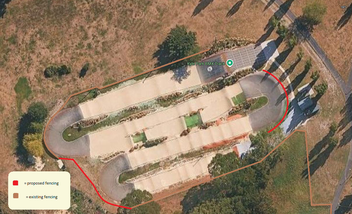 The BMX track has wooden fencing around some parts of the track. The club are proposing to put a 1.2m fence around the outside of more of the track.